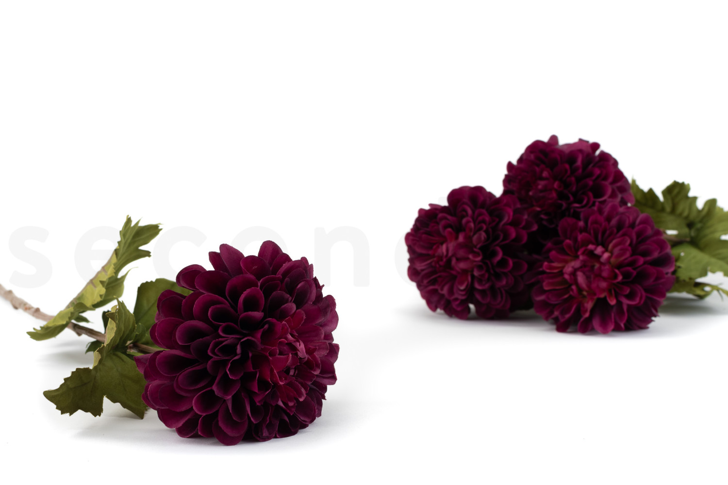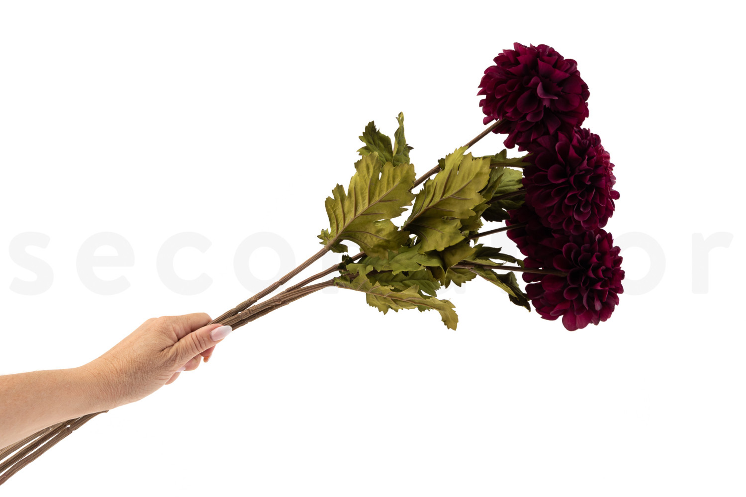 These deep plum artificial dahlias are perfect for adding a dramatic accent to fall arrangements, window displays, or statement floral centerpieces.