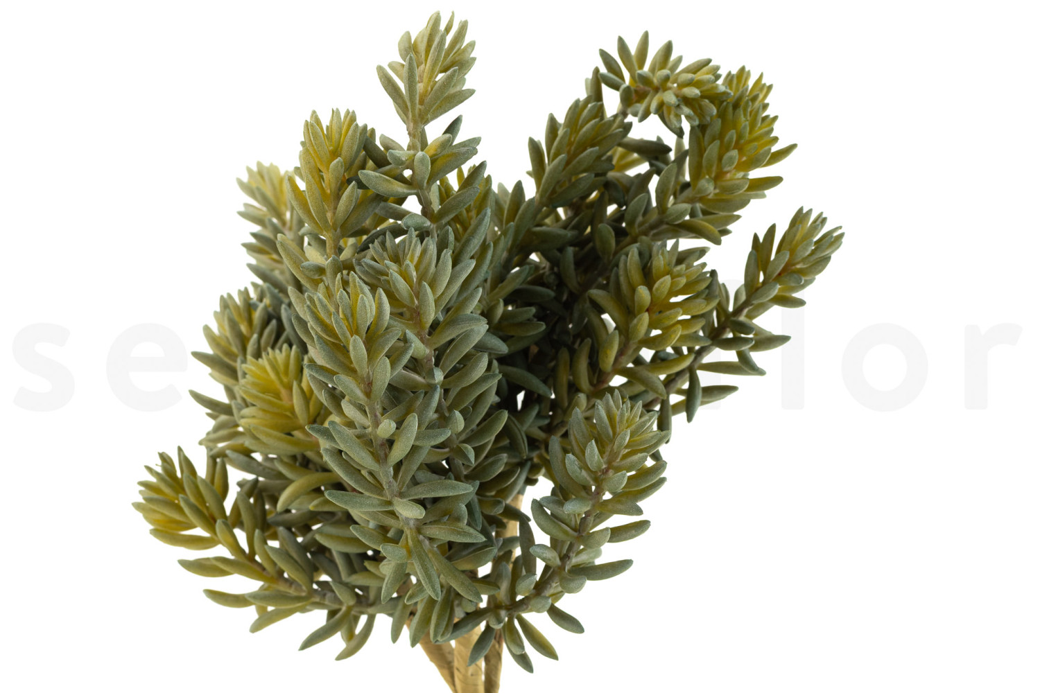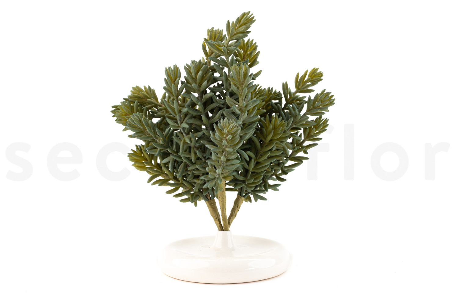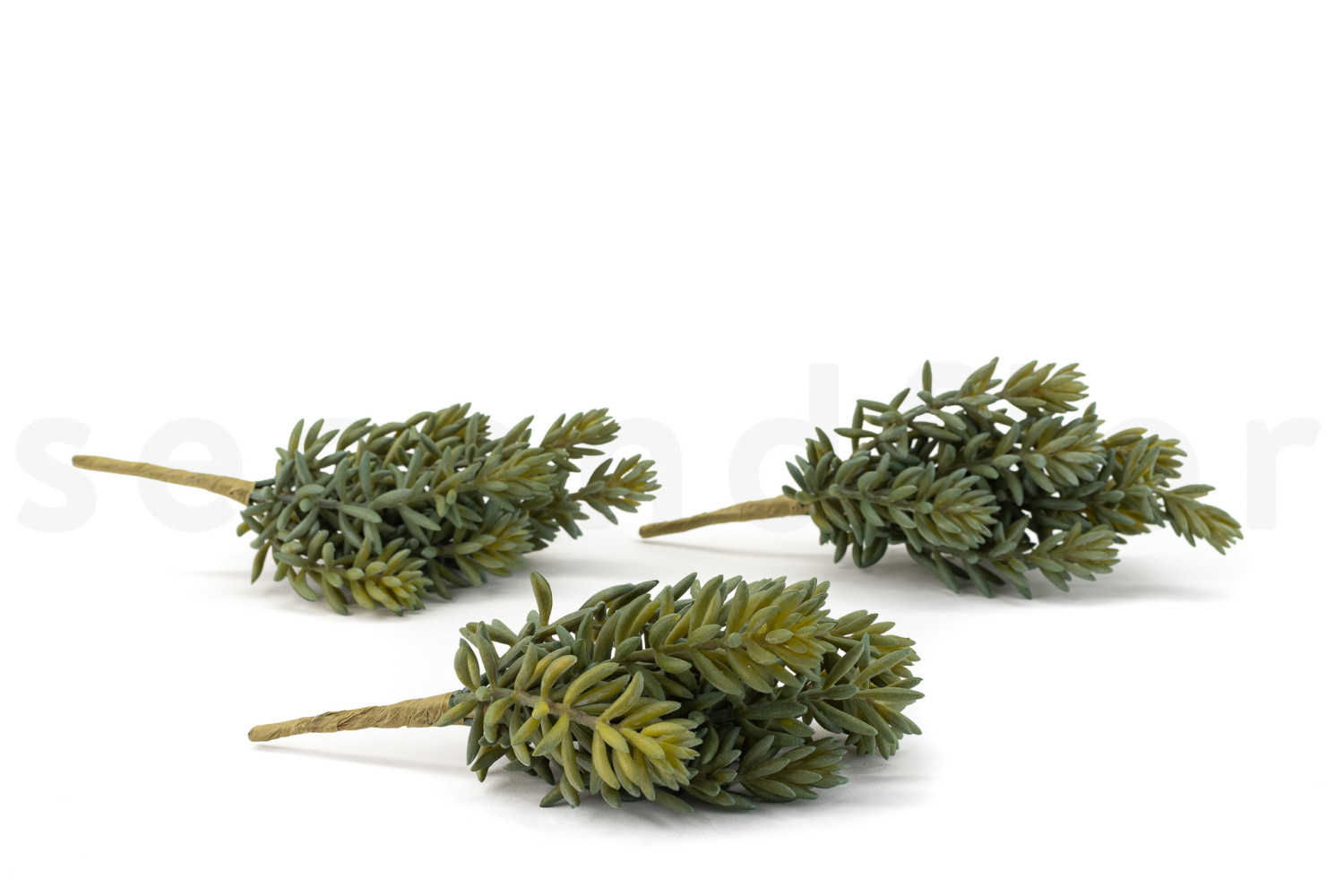 Don’t let its size fool you — this artificial Sedum brings strong visual impact with its unique texture and structure. Each of the three upright stems is topped with clusters of thick, fleshy leaves, mimicking the look of real Sedum rubrotinctum (minus the reddish tips). The result? A compact, sculptural accent that works wonders in modern arrangements.