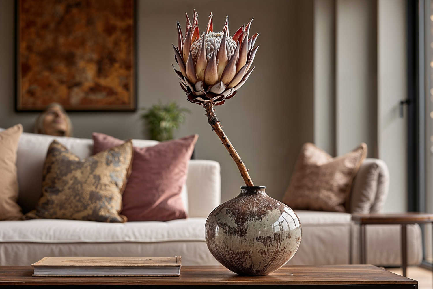 Perfect for florists, interior designers, and event decorators, this preserved protea is the ultimate accent piece for anyone looking to create luxurious, nature-inspired spaces that stand out.