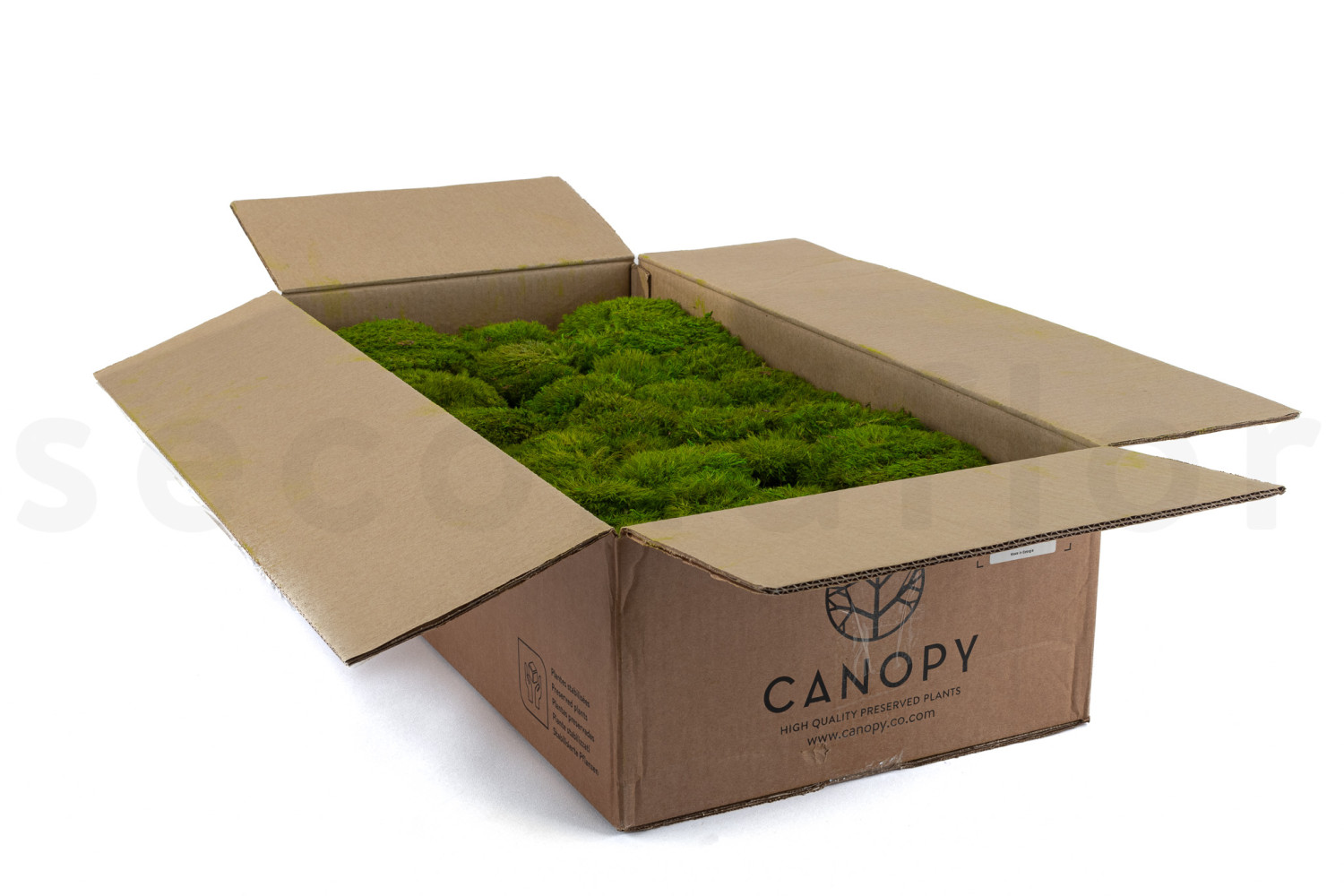 Our preserved mood moss comes in a convenient bulk carton, making it easy to handle, install and stock.