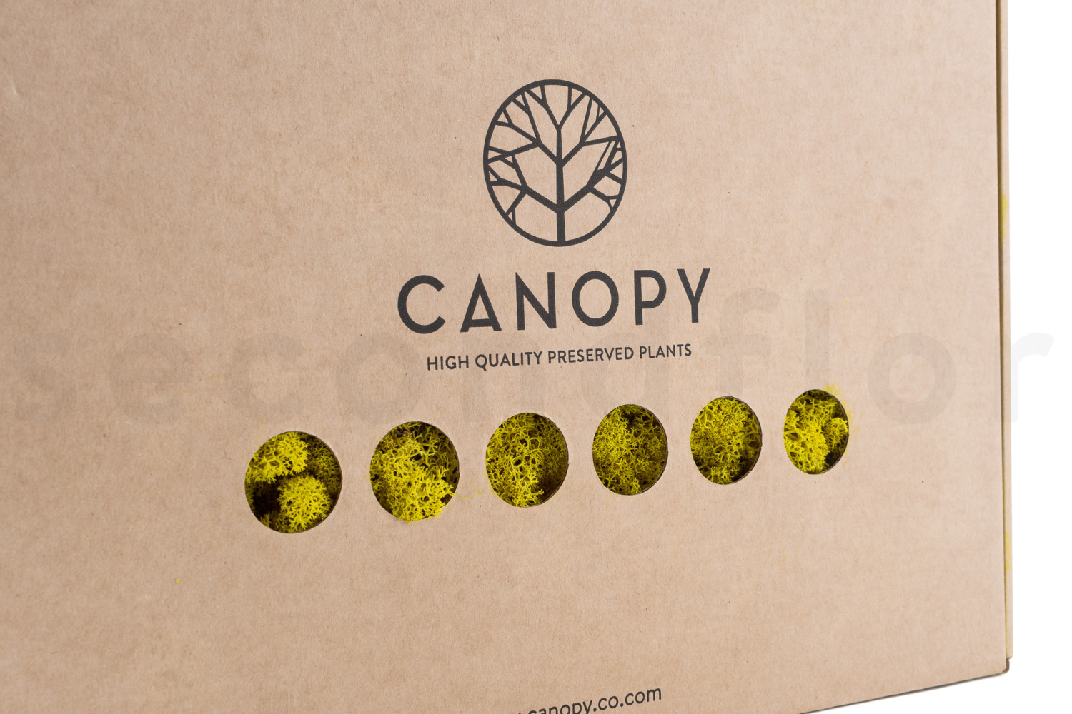 Our 1 kg box of preserved reindeer moss in greenish yellow is a true representation of nature's vivid beauty. This captivating hue brings warmth, cheerfulness, and positivity to any environment. Preserved with expert care, this moss maintains its color and lifelike appearance, offering an ideal solution for those who desire nature's touch in their designs.