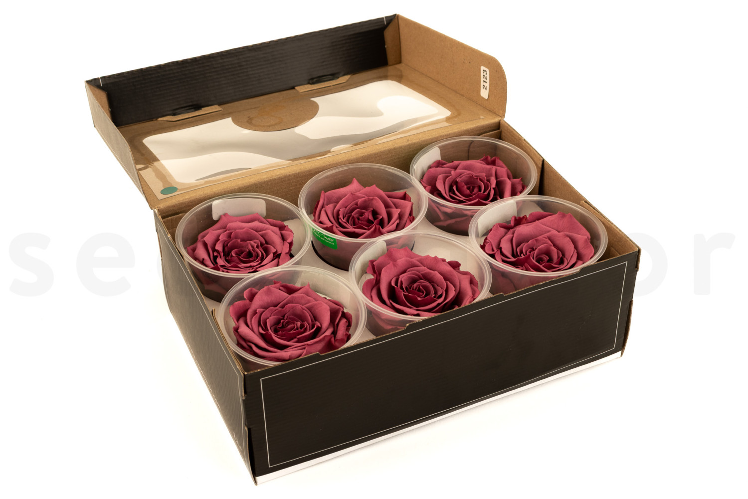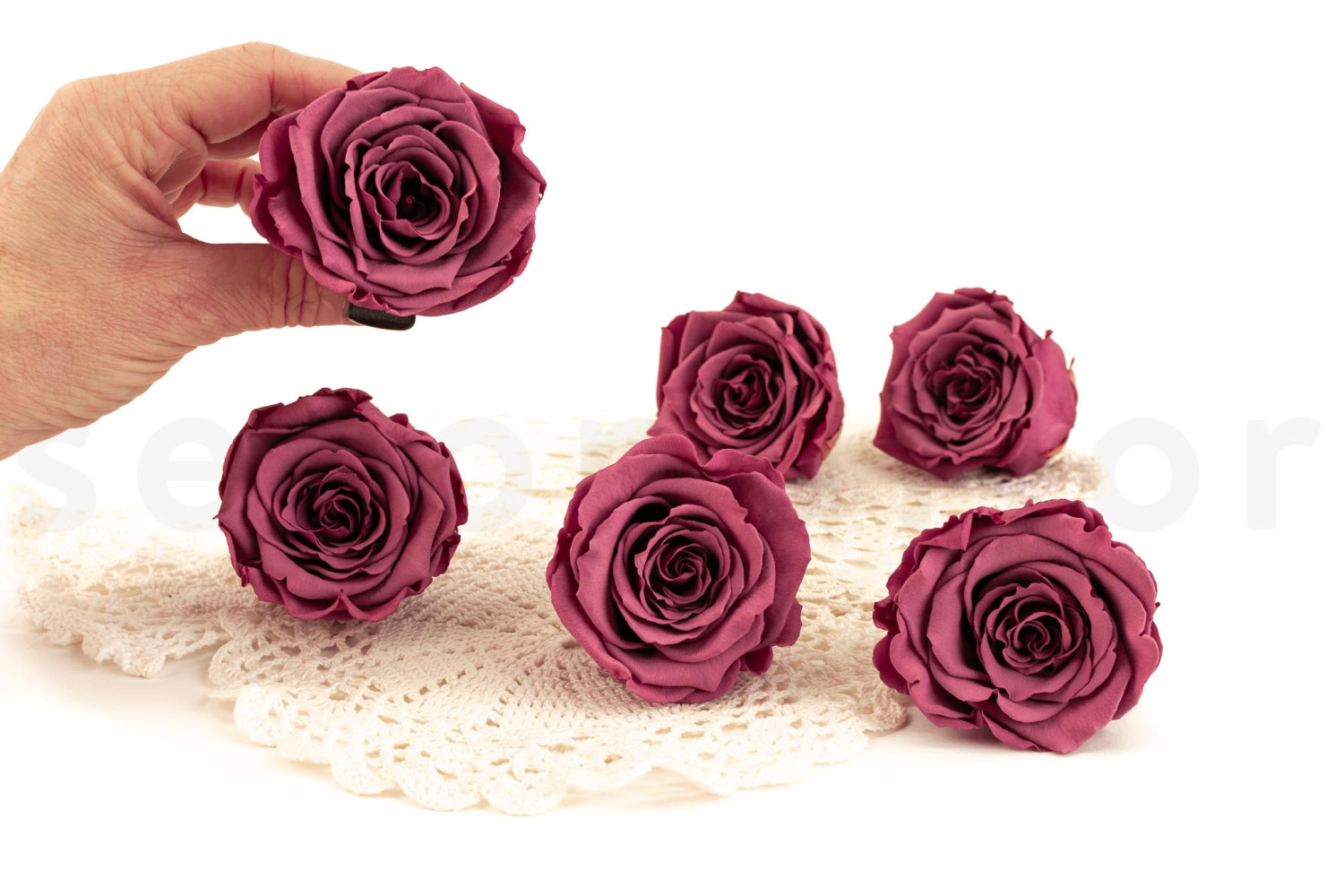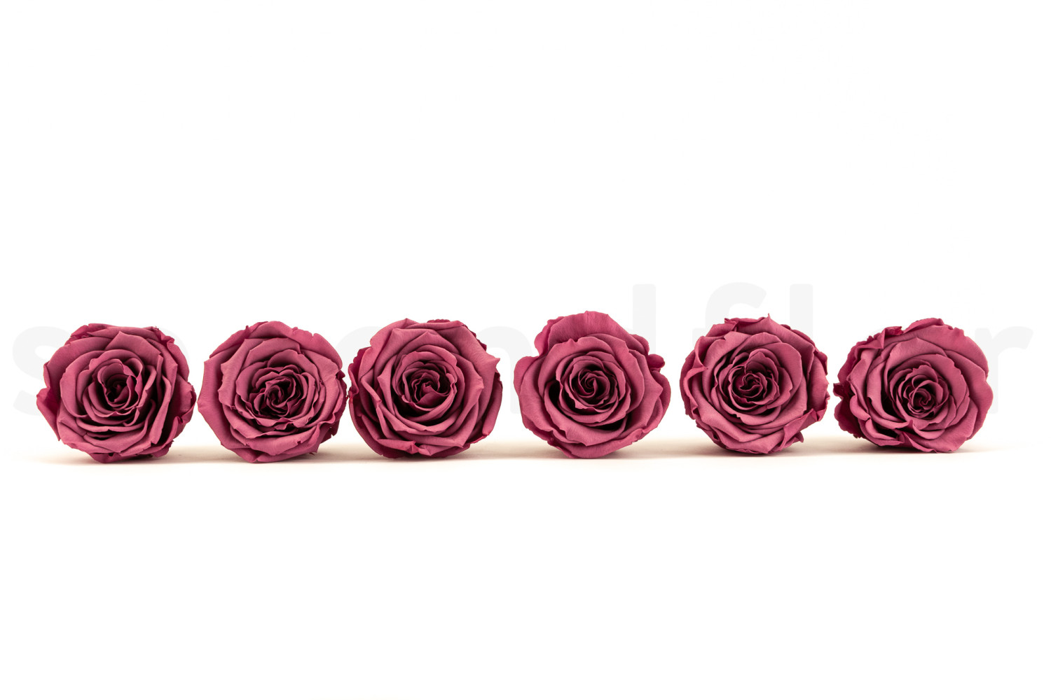 Elevate your floral designs with this stunning set of 6 Roseamor preserved roses in violet. Each rose measures 6.5cm in diameter, delivering premium quality and enduring beauty that lasts for months without maintenance.