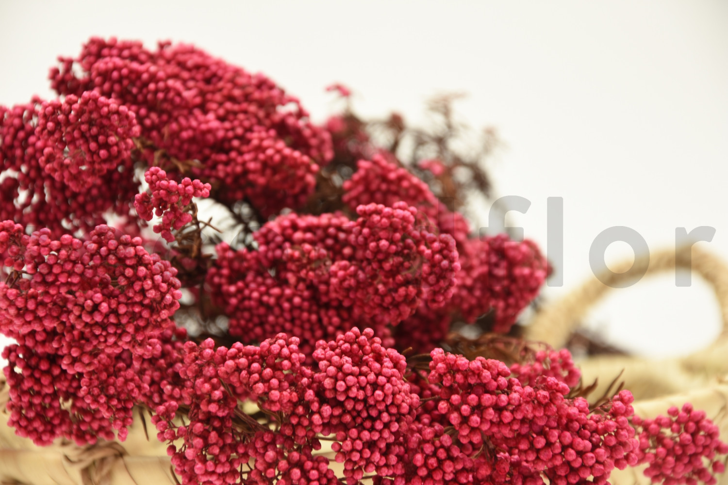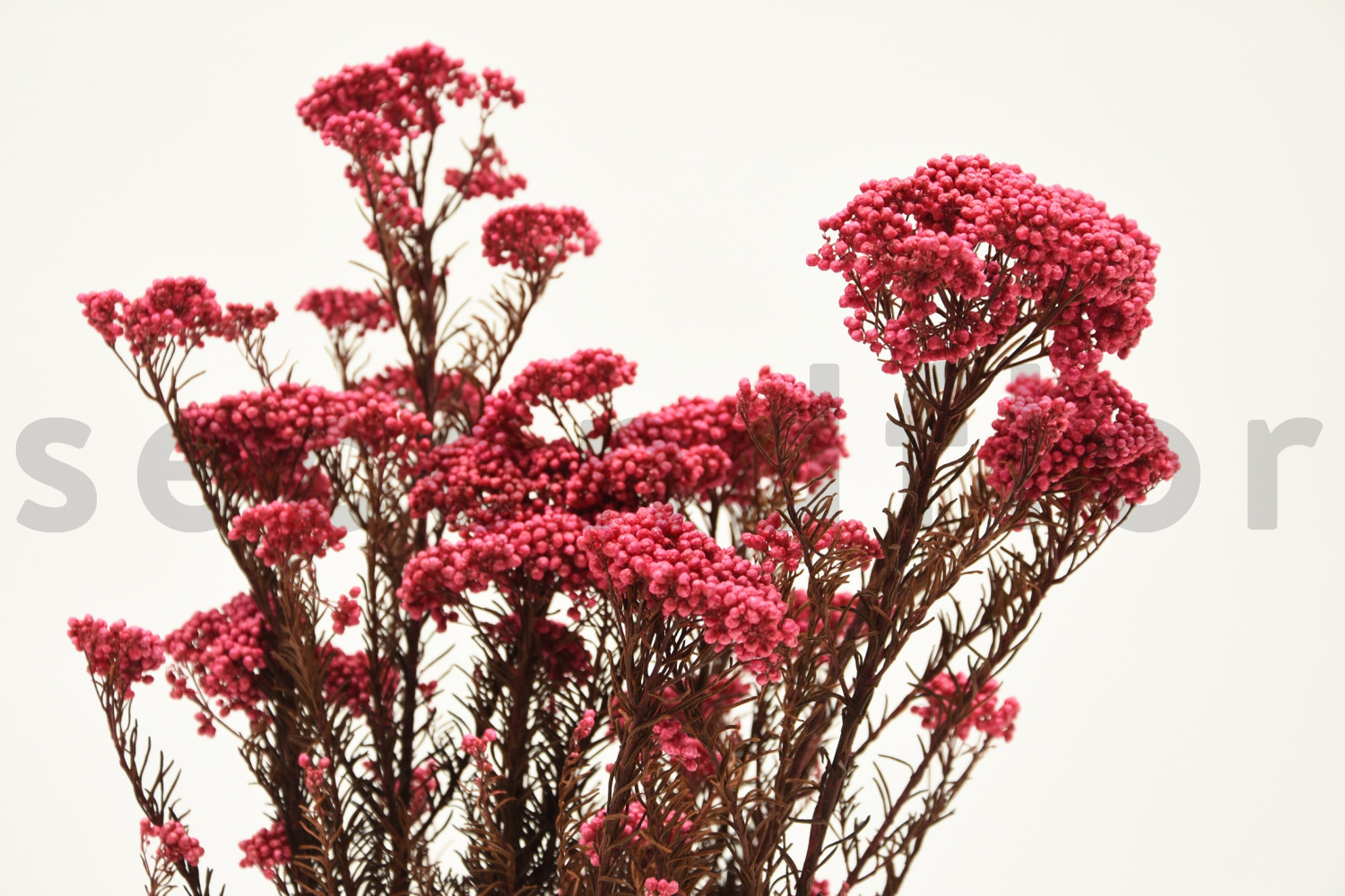 Bring instant vibrancy and texture to your floral creations with our Preserved Rice Flower in Pink. Sold as a generous bunch measuring 30 to 60 cm, this botanical is known for its clustered, bead-like blooms and uplifting color—making it an essential filler for floral professionals.